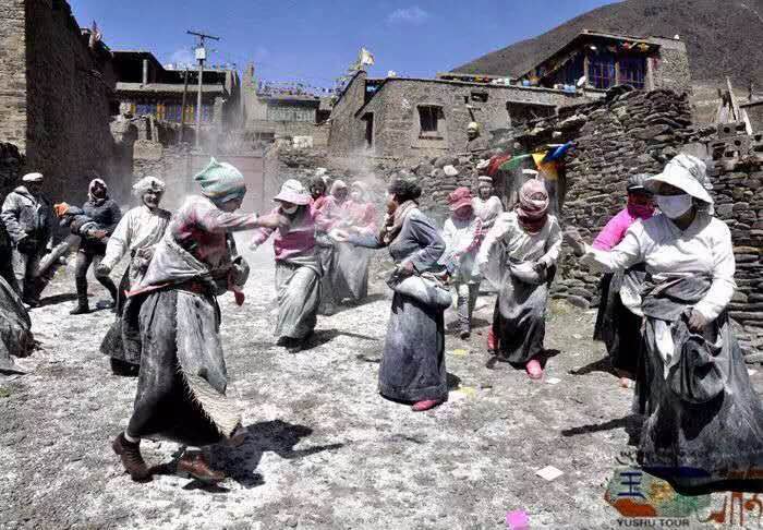 每年春耕前,一场青稞面粉“狂欢大战”在青藏高原通天河畔上演——