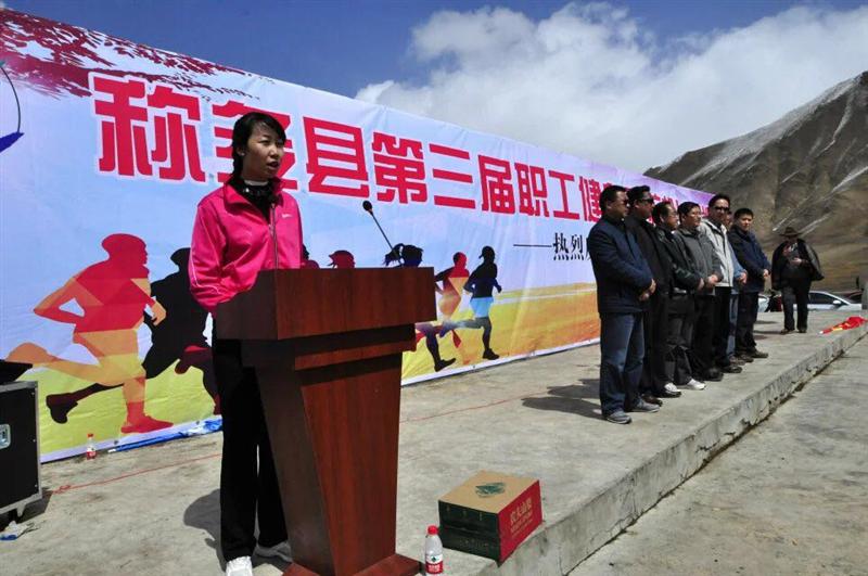 起跑仪式上县委副书记黄中锋同志讲话指出:“这次比赛是县上活跃职工文化生活的一次具体活动,也是称多文化体育活动的品牌工程,希望大家把坚韧不拔的体育精神带回到工作中去,以崭新的面貌,健康的体魄为新称多建设献计出力,建功立业。”